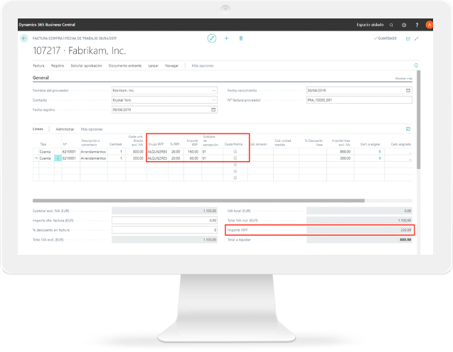 IRPF para Microsoft Dynamics 365 Business Central