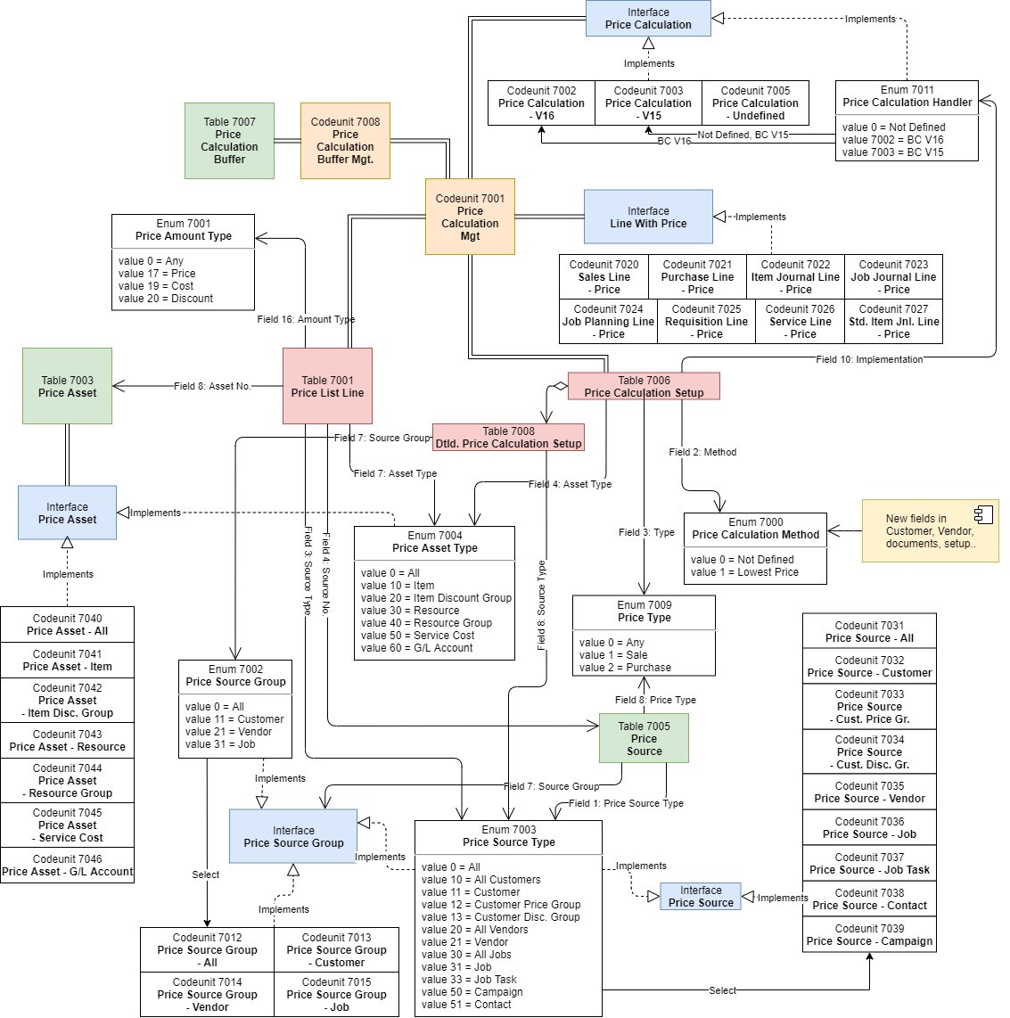 If you are already familiar with the operation and logic of the interface object, you may have understood that, with this new structure, price calculation is defined by the Price Calculation interface. Microsoft provides 2 implementations for this interface: version 15 (codeunit 7003) or version 16 (codeunit 7002). In addition, we can extend the functionality with completely different rates and discounts calculations from the standards, defining new codeunits that implement the Price Calculation interface.