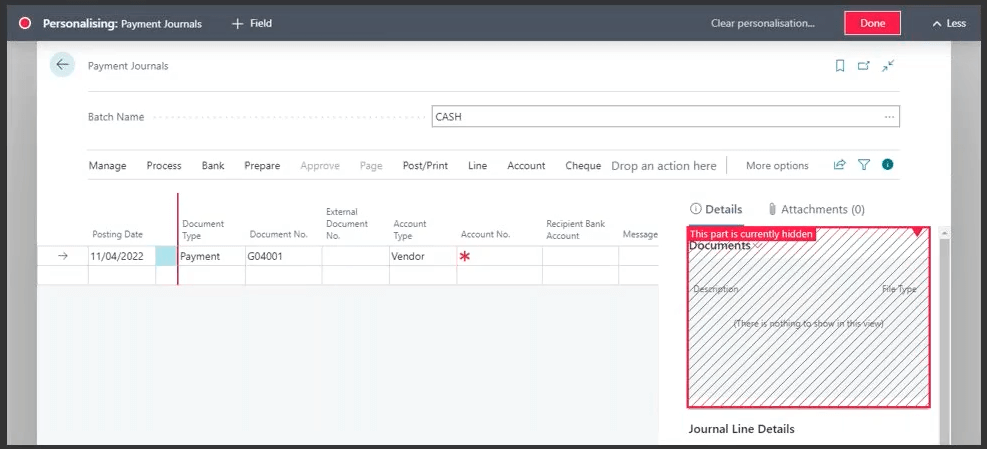 This new functionality makes it possible to record documents, without vendor names and other standard details, directly to general journal lines, thus creating lines in the general journal instead of invoices or credit notes.