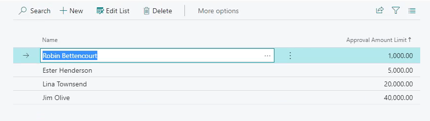 And, on the other hand, we have configured approvers and limits associated with each one of them: