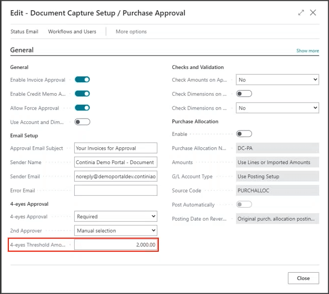 We will have a new field in which to indicate this threshold. So that all documents with an amount higher than this figure will go through the 4-eyes approval.