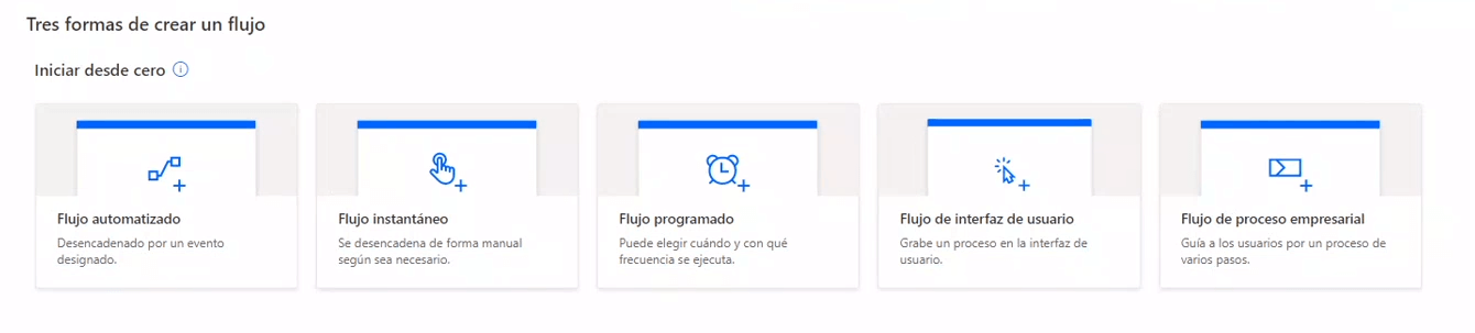 “Flujo automatizado”, “Flujo instantáneo” y “Flujo programado” hacen referencia a la automatización de tipo DPA, es decir, comunicación entre distintas plataformas mediante APIS. Eso sí, hay diferencias en función de cuándo se va a ejecutar el flujo y el resultado a conseguir: