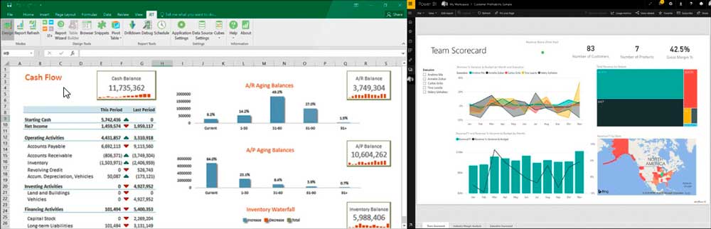 Estas herramientas de análisis y planificación son una forma muy sencilla de ver los datos, incluso si tienes distintos datos puedes cruzarlos de diferentes orígenes, (Navision, Access, Excel…) y puedes crear tu propio reporting agrupándolos todos en una sola hoja.