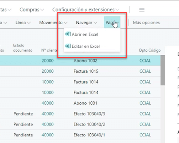 Uno de los puntos fuertes de Business Central no es solo la capacidad de ver los datos, sino también la opción de ver la información en Excel y poder utilizarla. De manera que tendremos dos opciones: ver en Excel y editar en Excel.