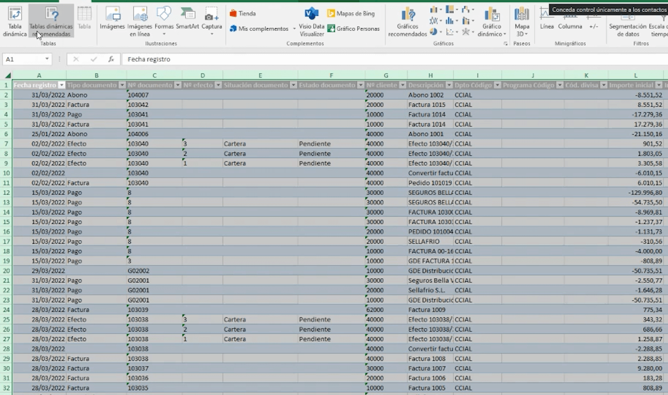 Una vez tenemos los datos en Excel, podemos aprovechar las capacidades de reporting del propio Excel para trabajar con estos datos.