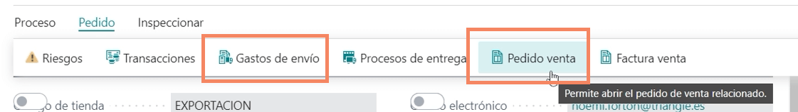 - Pedido de venta: ir al documento del pedido de venta propiamente de Business Central, por ejemplo si tiene que derivarse un ensamblado en la producción, una compra o cualquier cosa de la logística propia. Se podría indicar quién será el transportista el número de tracking y como es normal podríamos también facturar.