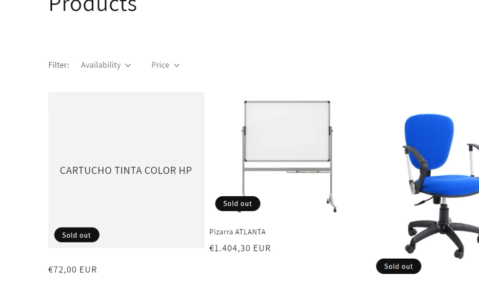 El artículo «Cartucho de Tinta Color HP» ahora aparece en este listado de productos.