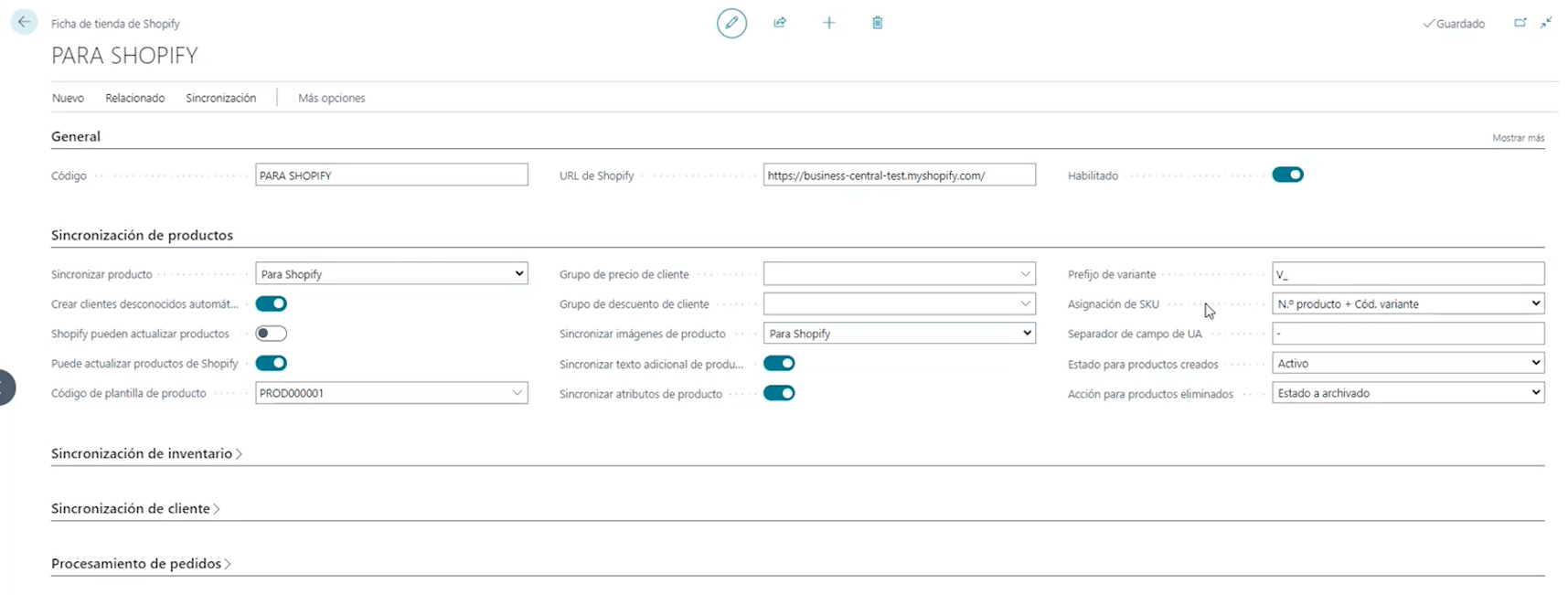 - Sincronizar imágenes: Eso sí, aunque en Shopify podemos tener diversas imágenes solo podemos sincronizar una de Business Central a Shopify