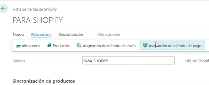 En el nombre, vemos el nombre del método de envío que tenemos en Shopify y en Código de método de envío es donde deberemos introducir dicho código para Business Central y así hacer el mapeo.