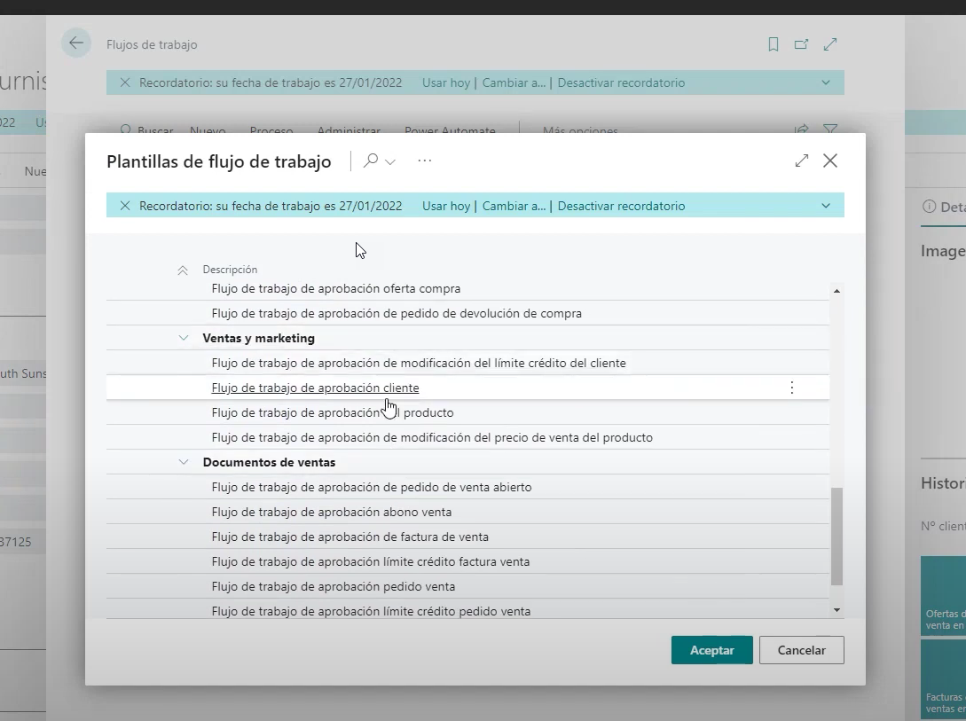 Por último, es importante destacar que Business Central ofrece una serie de flujos de trabajo ya predefinidos que pueden ayudar a automatizar ciertas tareas del equipo comercial. Estos flujos pueden optimizar los tiempos que tradicionalmente llevarían estas tareas y evitar errores involuntarios. Estos flujos son totalmente editables, lo que significa que se pueden personalizar según las necesidades de cada empresa.