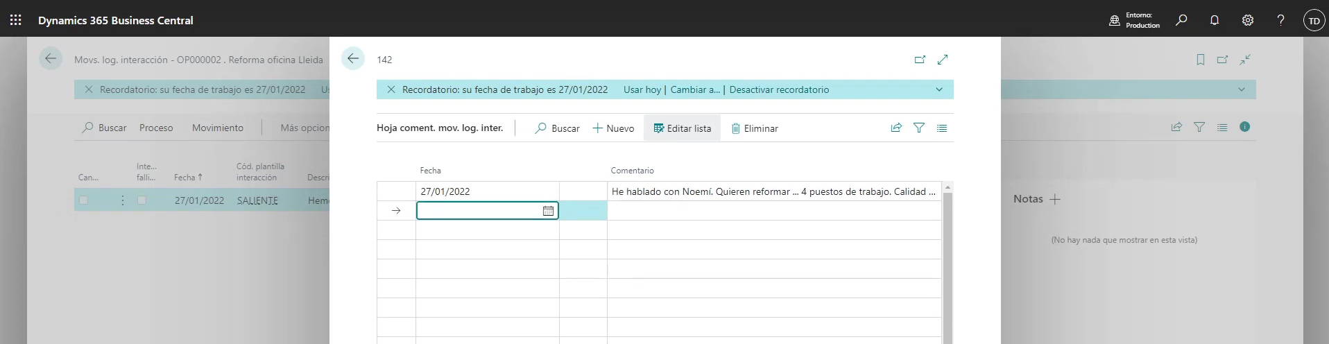 En Business Central, toda la información relacionada con esta oportunidad se actualizará automáticamente. Para no perder la trazabilidad de la llamada, se puede dejar un feedback como comentario tanto desde el cliente web como desde el addin de Outlook: