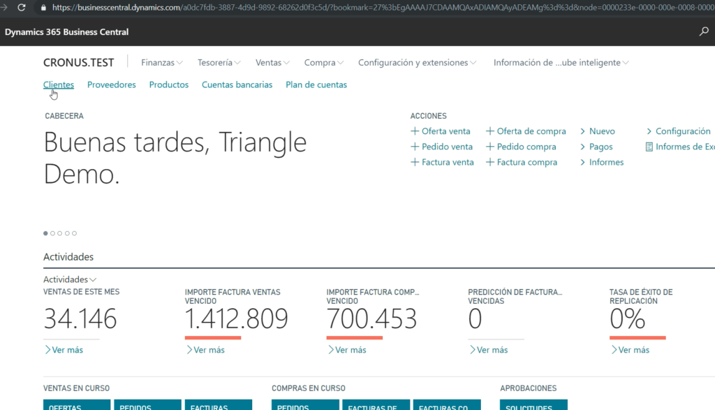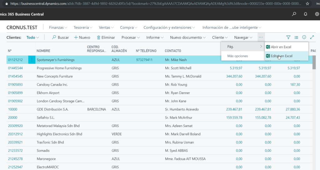 Veamos ahora a otro ejemplo en el que queremos editar y publicar directamente datos en Excel. Accedemos a la lista de clientes directamente desde nuestro Role Center.