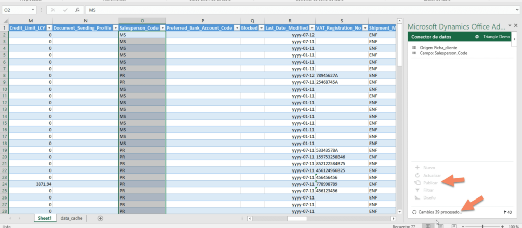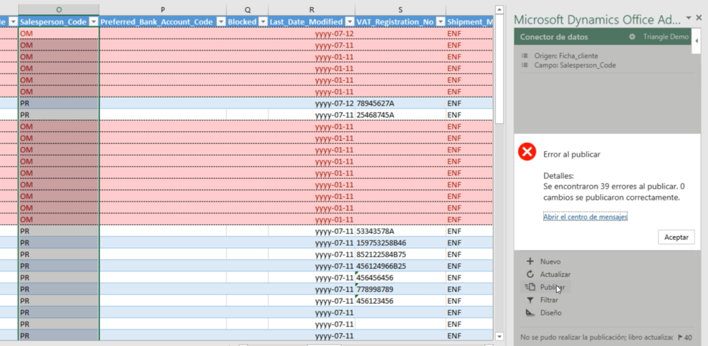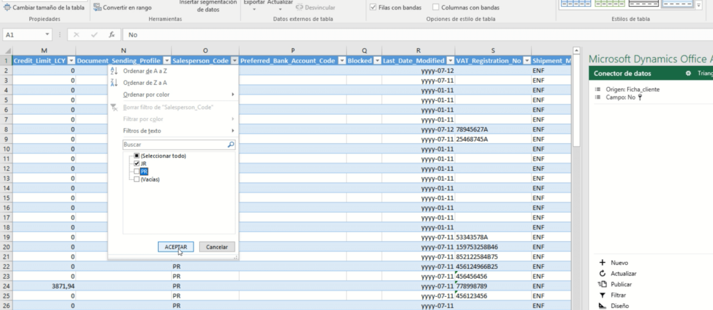 Para terminar el ejemplo, vemos que efectivamente tenemos el vendedor “PR” que era el que habíamos dejado sin modificar, y todo el resto se han asignado al vendedor MS. Por lo tanto, hemos logrado publicar directamente desde Excel. Y contando con un control de errores, que será esencial para no hacer errores mientras estamos trabajando directamente desde Excel.