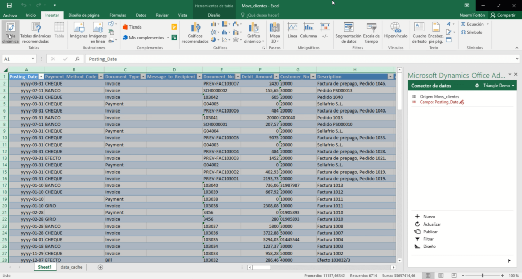 Interacción entre Dynamics 365 Business Central y Excel